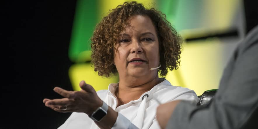 Lisa Jackson, senior vice president of environment, policy and social initiatives at Apple Inc., speaks during the TechCrunch Disrupt 2017 in San Francisco, California, U.S., on Tuesday, Sept. 19, 2017.
